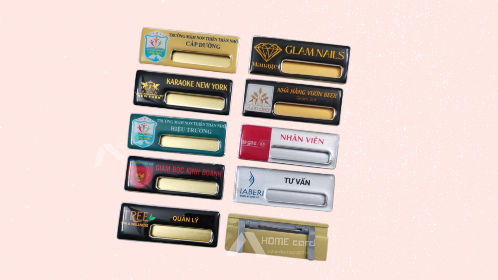 Thẻ bảng tên cài áo là loại thẻ nhỏ gọn, được thiết kế để gắn trực tiếp lên áo bằng ghim hoặc nam châm, giúp nhận diện nhân viên nhanh chóng và chuyên nghiệp. Thẻ thường được làm từ nhựa PVC hoặc mica, in rõ ràng tên, chức vụ và logo công ty. Đây là lựa chọn phổ biến trong các doanh nghiệp, nhà hàng, khách sạn nhằm tạo ấn tượng lịch sự và đồng nhất trong môi trường làm việc.