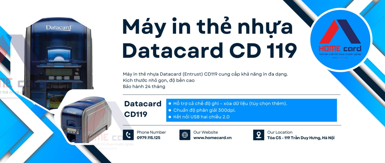 Homecard – Nơi phân phối máy in thẻ nhựa Datacard CD119 chính hãng với giá tốt nhất. Sản phẩm nhập trực tiếp tại hãng nên các thiết bị được bán tại Homecard cam kết là hàng chính hãng, có chất lượng sử dụng cao và có chính sách bảo hành đến 36 tháng. Bên cạnh đó, đội ngũ chuyên viên kỹ thuật giàu kinh nghiệm của Homecard sẽ luôn đồng hành cùng bạn từ khâu lắp đặt cho đến vận hành, hậu mãi.