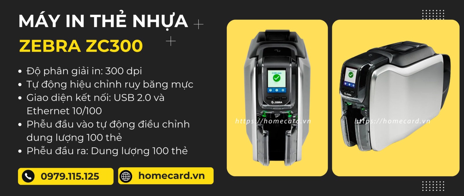 Mua máy in thẻ nhựa Zebra ZC300 chính hãng tại Homecard